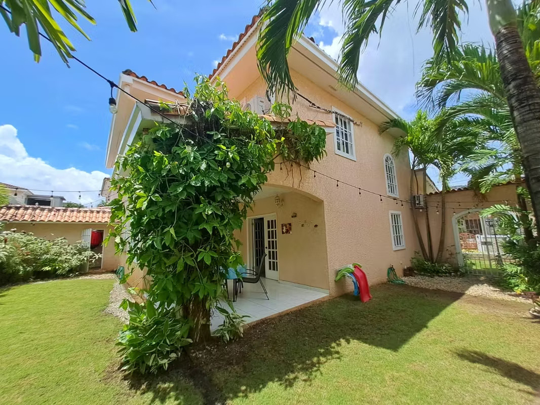 CASA DE 2 NIVELES CON DOBLE ALTURA, PATIO Y SEGURIDAD 24/7 AMPLIOS ESPACIOS + UBICACIÓN PRIVILEGIADA + LISTA PARA MUDARSE Descubre esta espectacular casa de 273 m² en lote de 344 m², diseñada para confort y funcionalidad. Disfruta de sala-comedor de doble altura con A/C central, cocina moderna renovada, estudio, den y family room. Cuenta con 4 recámaras (principal con walk-in closet y baño privado), 3.5 baños, cuarto y baño de servicio, lavandería techada y 3 depósitos. Relájate en su amplia terraza techada y patio con jardín y palmeras. Estacionamiento techado para 2 autos dentro de residencial cerrado con seguridad 24/7. Inversión: $440,000 ------- TWO-STORY HOUSE WITH DOUBLE-HEIGHT CEILINGS, PATIO, AND 24/7 SECURITY SPACIOUS ROOMS + PRIME LOCATION + MOVE-IN READY Discover this spectacular 273 m² house on a 344 m² lot, designed for comfort and functionality. Enjoy a double-height living and dining room with central air conditioning, a renovated modern kitchen, a study, a den, and a family room. It features 4 bedrooms (the master with a walk-in closet and private bathroom), 3.5 bathrooms, a maid's quarters with bathroom, a covered laundry room, and 3 storage rooms. Relax on the spacious covered terrace and patio with a garden and palm trees. Covered parking for 2 cars within a gated community with 24/7 security. Investment: $440,000